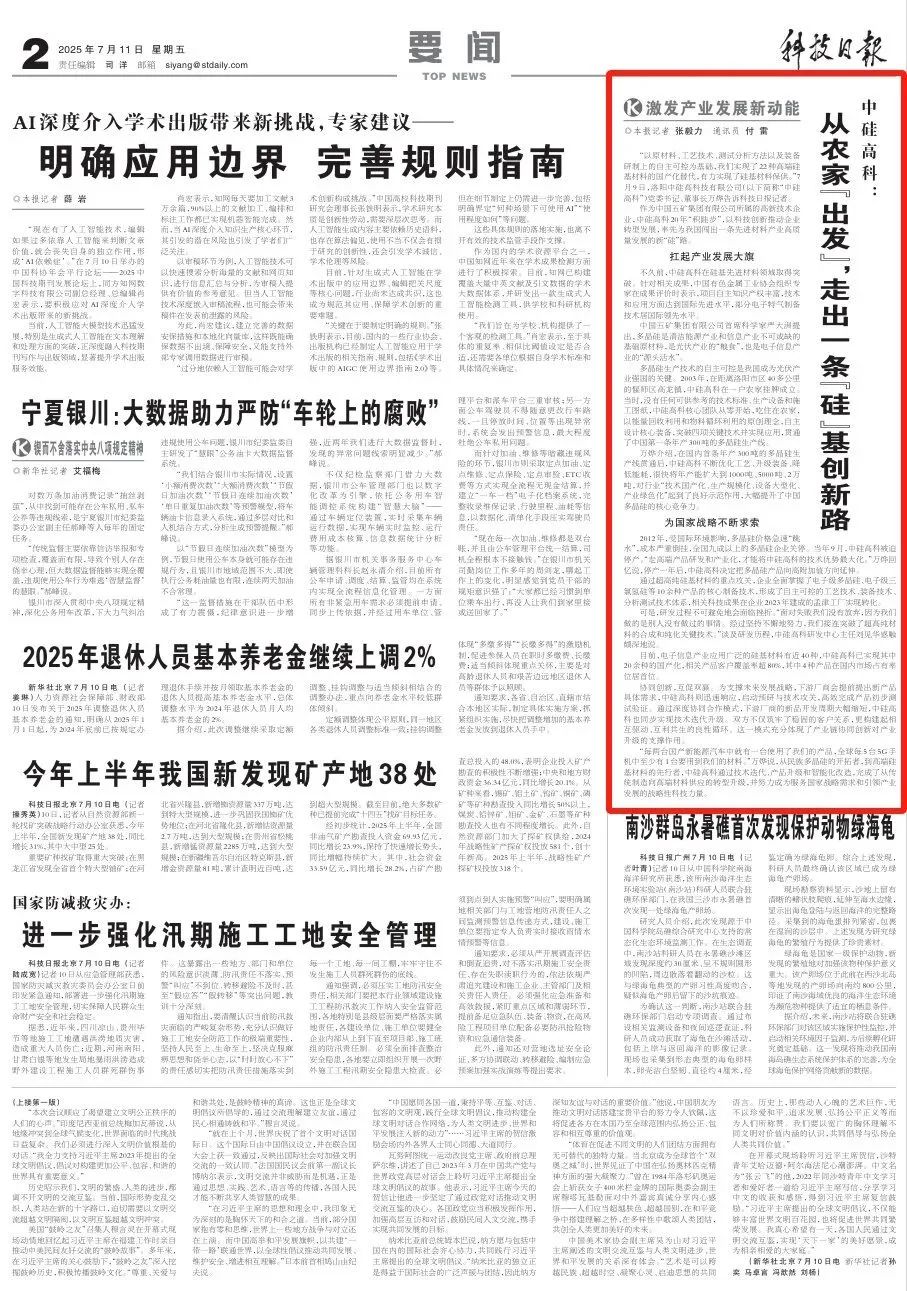 • [2025-07-11] 《科技日報》報道中硅高科“硅”基創(chuàng)新路